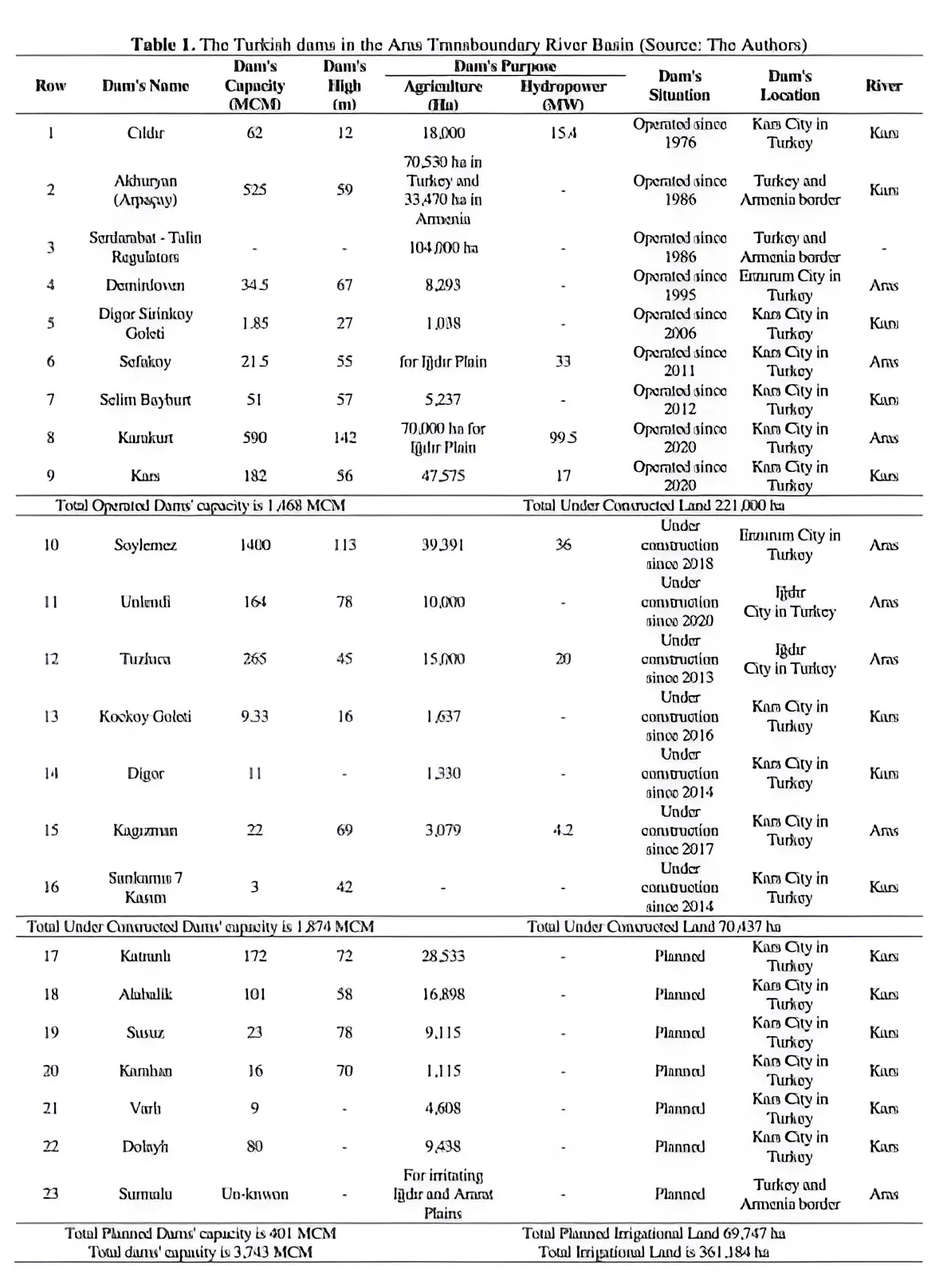 - The construction of GAP and Araks River dams reflects Turkey’s transboundary river management and wider water security policy, often at the expense of its riparians.